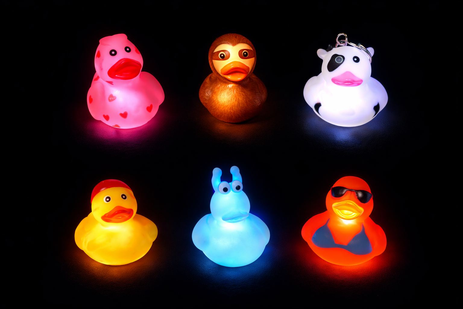 Light-Up LED Designer Rubber Ducks with on/off switches